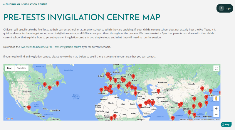 3. Should neither of these options be suitable, you can find a map of our registered governmental or educational centres on our website. You can get in touch with them to see if they could assist you, or you can ask a centre near you to apply to become an ISEB Pre-Tests invigilation centre. You will need to get in touch with the centre before selecting them on the portal to ensure they have availability to invigilate the candidate's tests.
