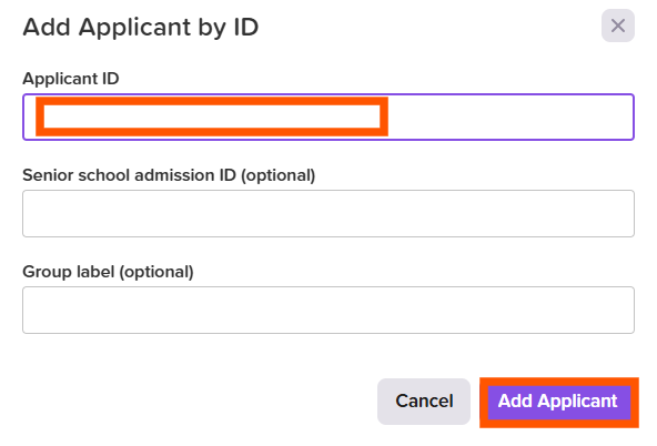 - Then, enter their Applicant ID, and then finally, select ‘Add applicant’.